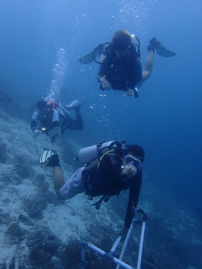 "Uns geht es sehr gut, es ist so schön hier und einfach super! Wir sind auf einer kleinen Insel und helfen bei der Konservierung des Riffs indem wir bei "Riff-Checks" und bei der Anpflanzung neuer Korallen helfen und zuschauen, dass die gut wachsen. Außerdem gehen wir zwei Mal die Woche in eine Schule und geben Englischunterricht. Wir assistieren auch noch beim Mantarochen-research."