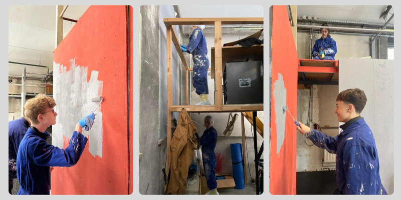 Hier wird in diesem Jahr nicht nur die Natur wiedergeboren, denn die Schüler:innen des Delta-Jahrgangs arbeiten im Rahmen eines Skills-Projekts daran, der Halle einen neuen Look, zu verleihen. Bänke werden tapeziert, die Wände neu bemalt und alles bis in die kleinste Ecke gründlich geputzt.